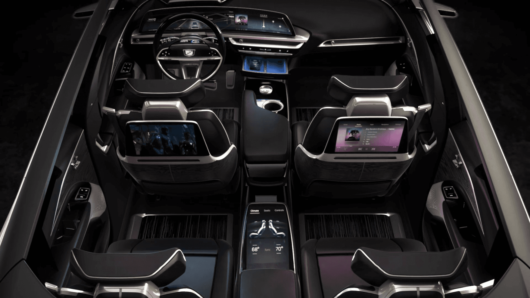 The 3D Interface was designed to elevate the elegant interior with choreographed lighting and iridescent colors, offering an engaging user experience that celebrates the heritage of the Cadillac brand and embraces an all-electric future.