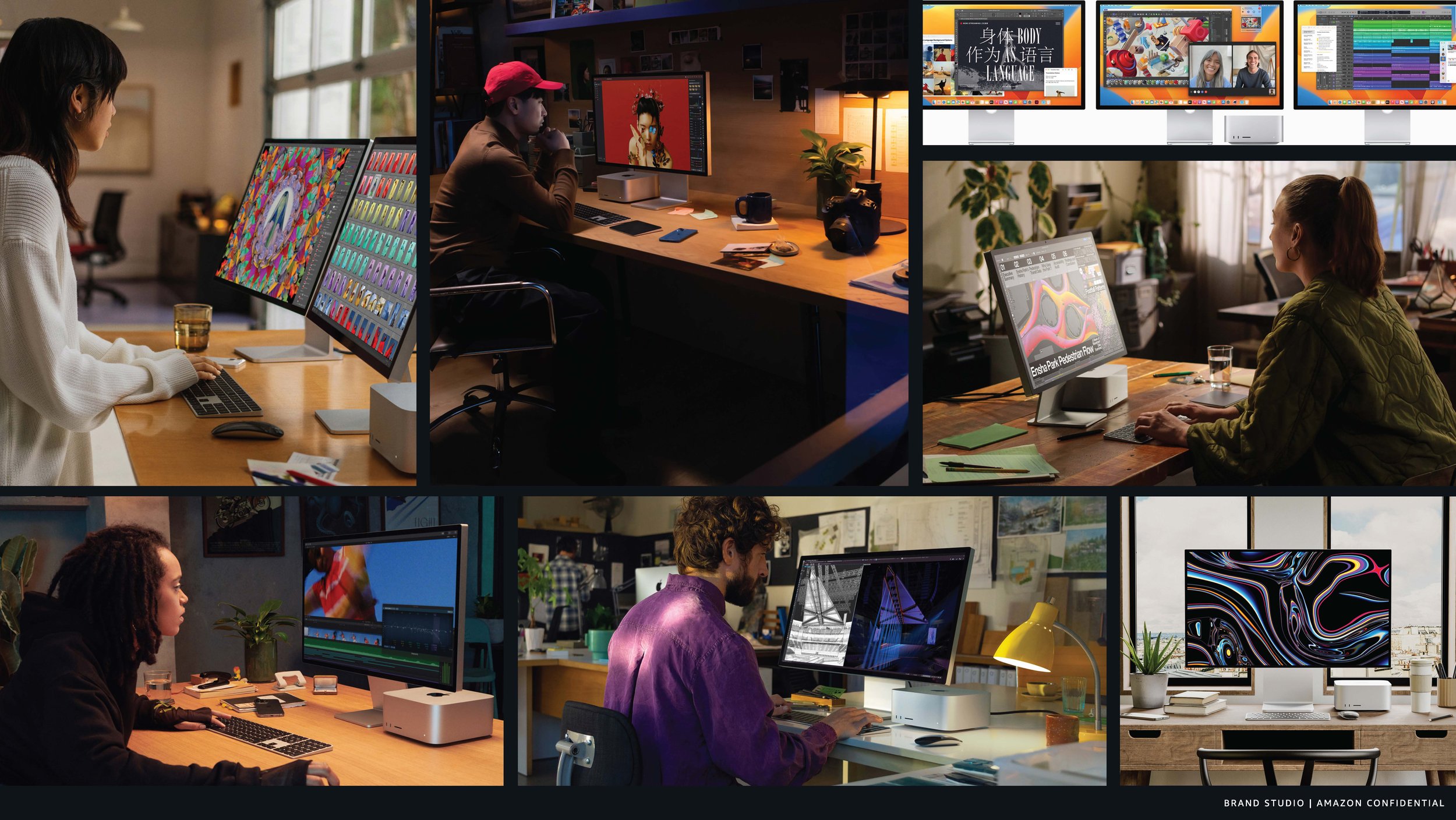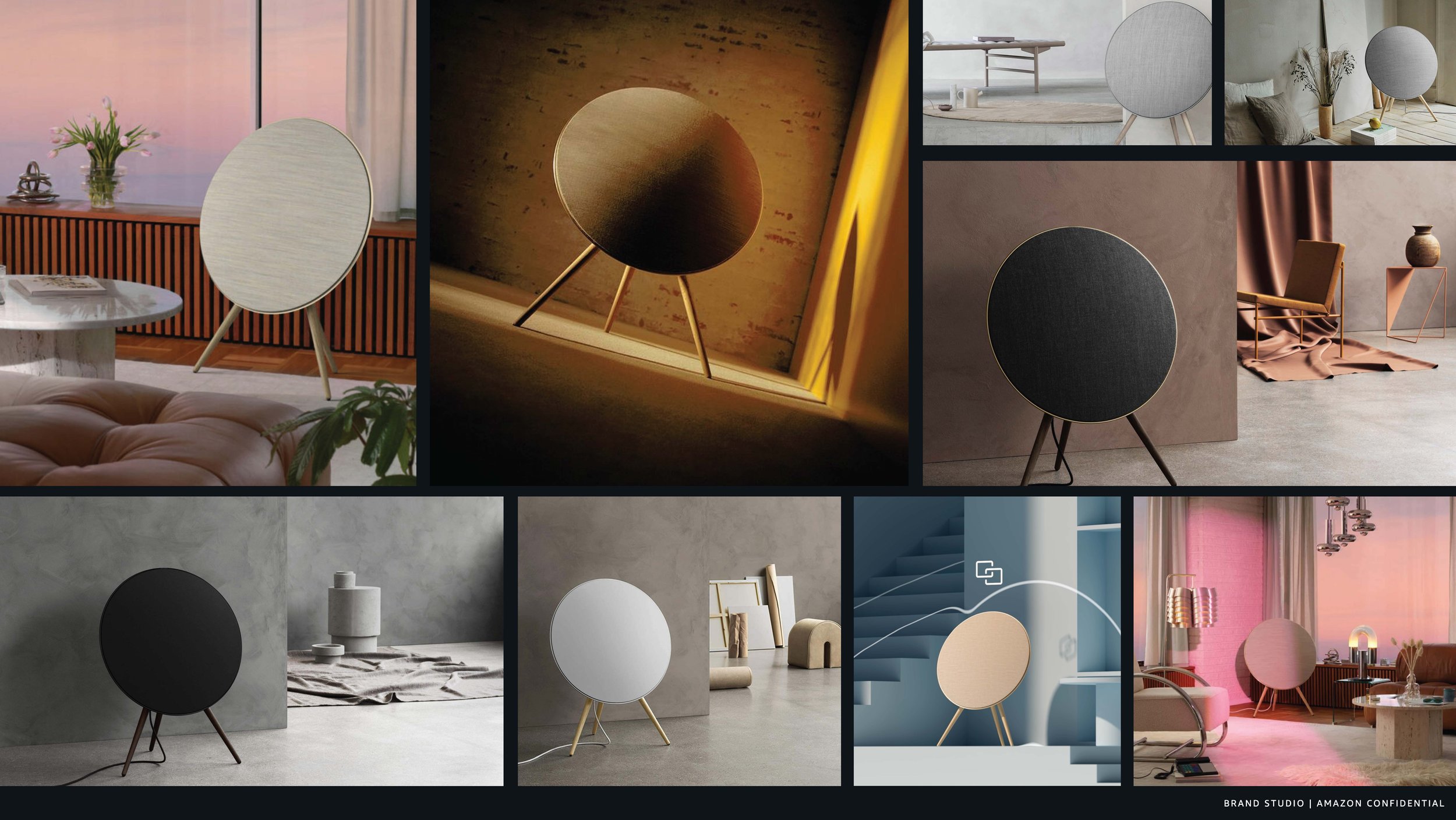 Until now, Amazon devices had either lived in “on-white” or in photo-real contextual lifestyle environments. This expression explored metaphorically extending the sound features into the photo studio environment.